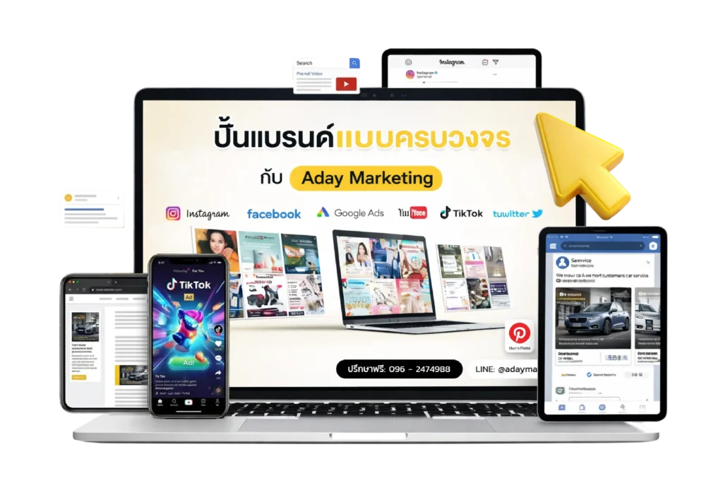 Aday Marketing ดูแลการตลาดดิจิทัลครบวงจร ตั้งแต่วางแผน สร้างคอนเทนต์ ลงโฆษณา ไปจนถึงวัดผลและปรับปรุง โดยมีบริการหลักดังนี้